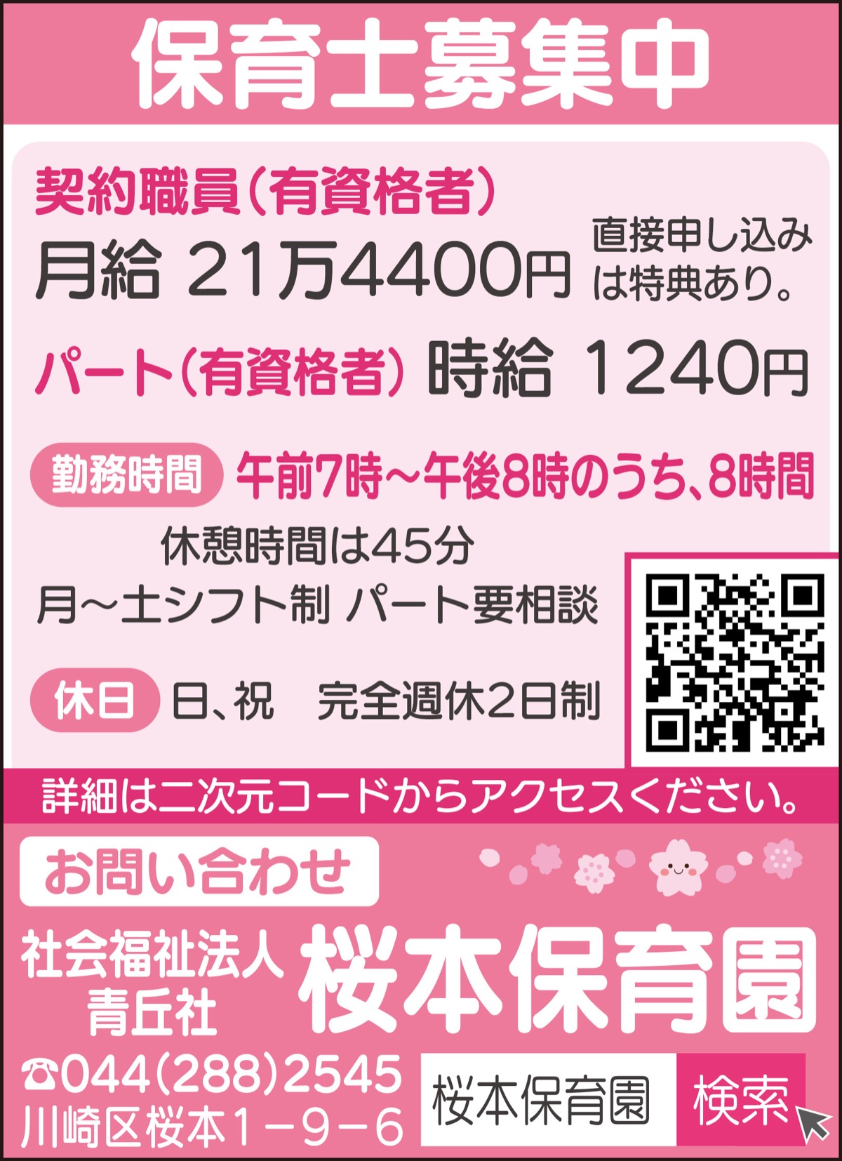 認可保育園「桜本保育園」は保育士を募集中。「やりがいのある職場です。あしたからでも働けます」