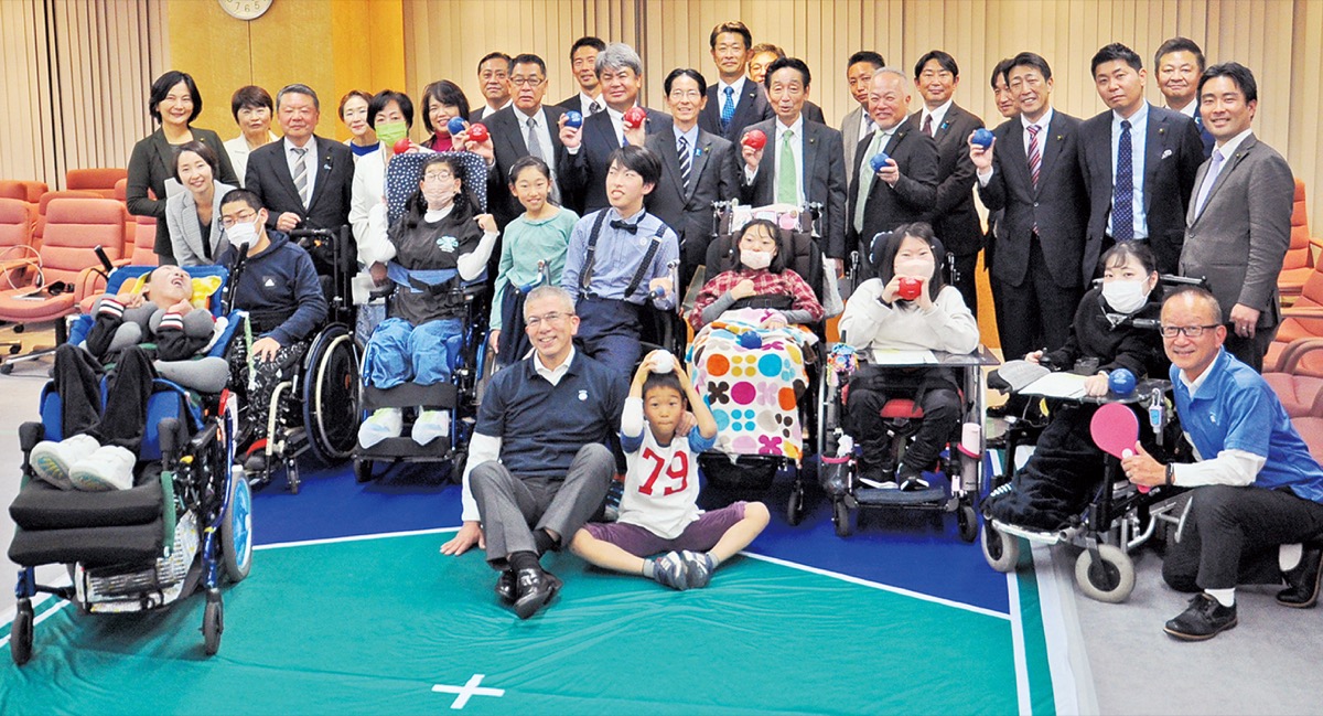 超党派の県議会議員57人で構成する「県議会ユニバーサルスポーツ振興議員連盟」は12月6日、パラリンピックの正式種目「ボッチャ」を通じ、障害当事者と交流する体験会を県庁新庁舎で行った。