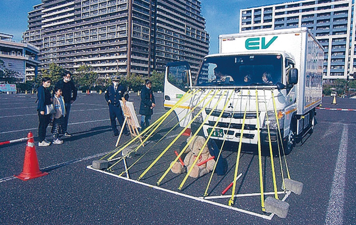 川崎臨港警察署は年末と新年の交通事故防止などを目的にしたキャンペーンを12月16日、川崎大師祈祷殿大師河原駐車場で開催した。大型トラックやクレーン車をはじめとする重機などを使った死角体験のほか、白バイの展示などが行われ、買い物帰りの人たちが交通安全に向けた意識を新たにしていた。