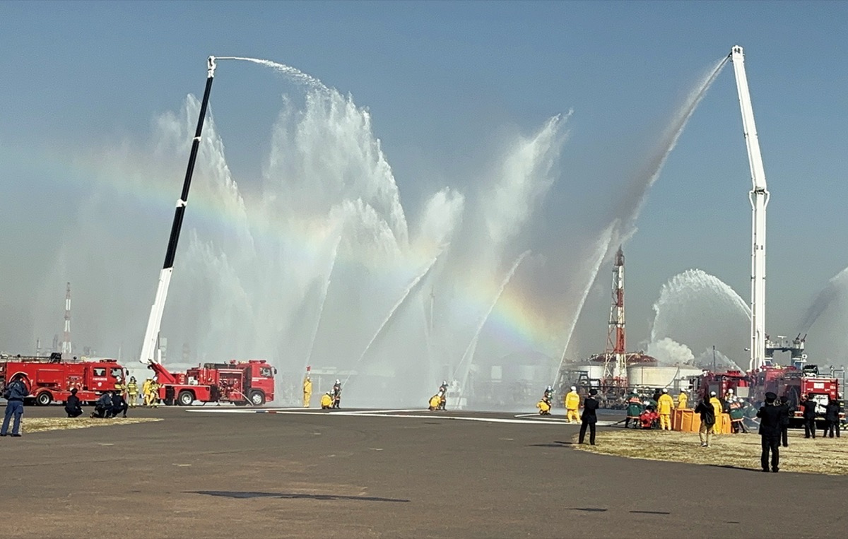 式典では消防部隊による分列行進や消防艇やポンプ車による一斉放水が行われた。