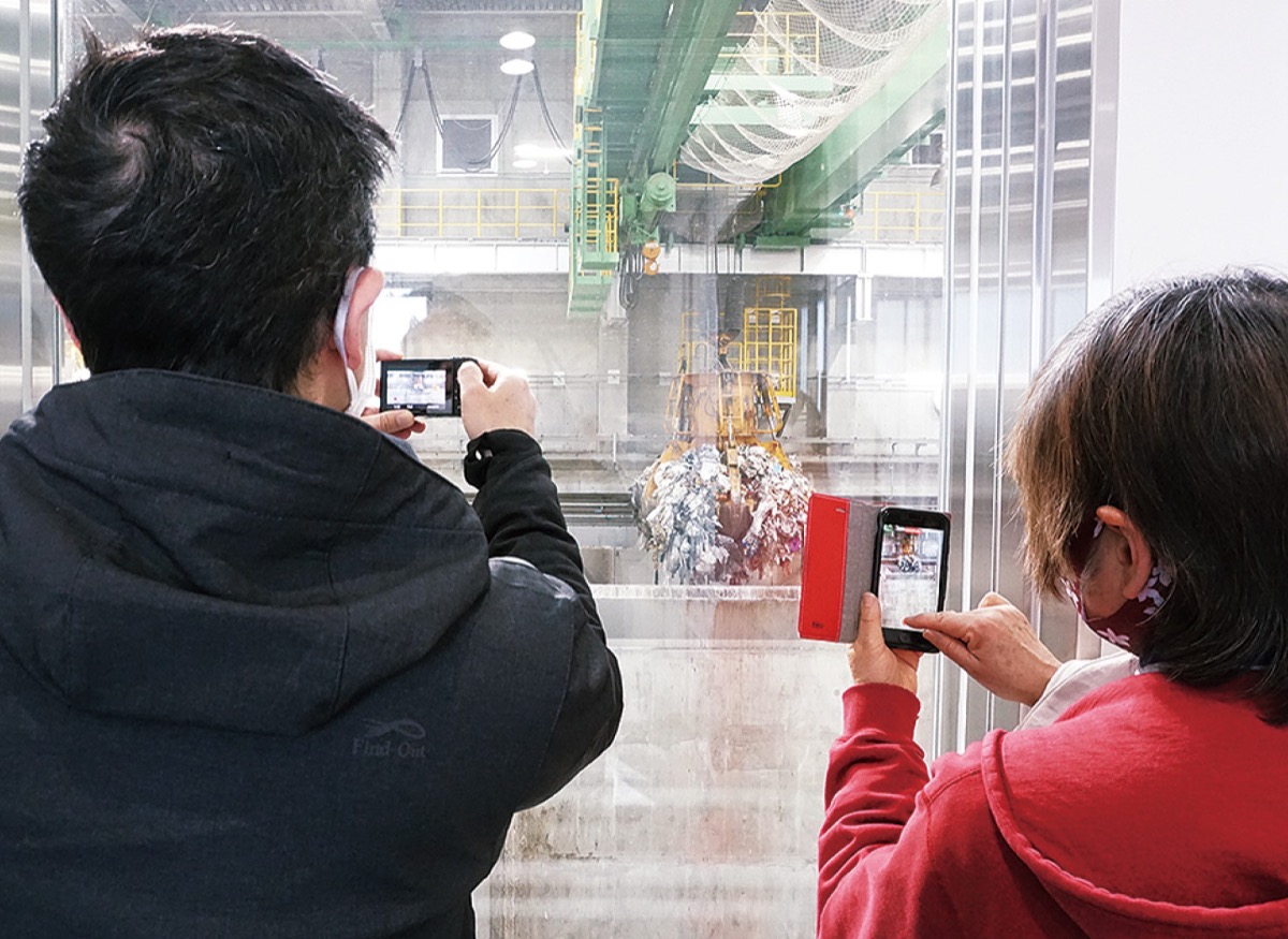 内覧会には周辺住民や、親子連れも多く見られた。集められたごみを焼却炉へと移動させる「ごみクレーン」のエリアでは、巨大なクレーンがごみをつかんで持ち上げるたびに歓声がわいた。多摩区から2歳の長女と訪れた男性会社員は「ごみ処理施設の見学は小学生以来。ごみの量に驚いた」と話していた。