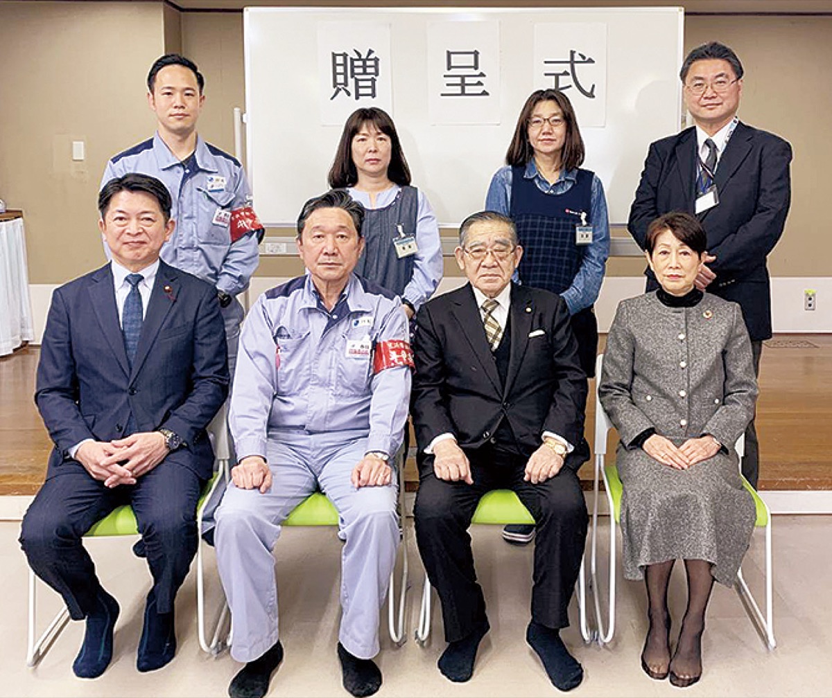 贈呈式には渡部堅三同組合執行委員長、同施設を管理する島田潤二川崎区社会福祉協議会会長、石渡多加子藤崎老人いこいの家運営委員長らが出席。渡部執行委員長が島田会長に目録を手渡した。同施設によると、利用者がいすを使った運動を頻繁に行っていることもあり、いすが痛んで困っていたという。