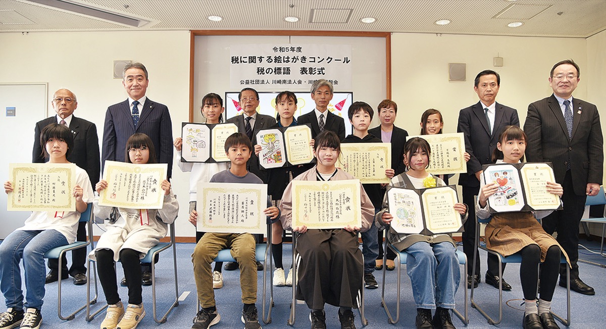 川崎南法人会(鈴木愼二郎会長)と川崎南間税会(武藤聰宏会長)共催の「令和5年度 税に関する絵はがきコンクール・税の標語」の表彰式が3月29日、川崎市産業振興会館(幸区堀川町)で行われた。