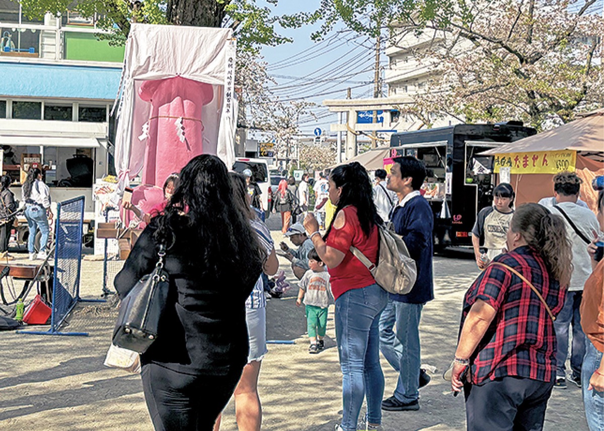 若宮八幡宮(川崎区大師駅前)の境内にある金山神社の「かなまら祭」が4月6日と7日に開かれた。13日、14日は「かなまら祭『市』」が行われ、期間中、大勢の人で賑わいを見せた。
