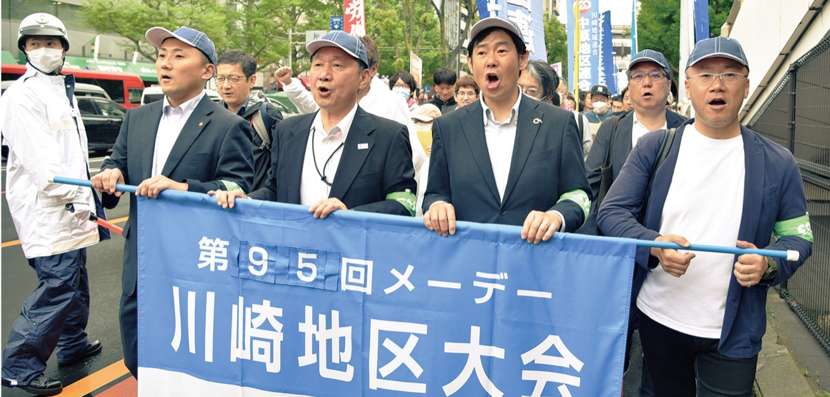 川崎地域連合(渡部堅三議長)による労働者の祭典「メーデー」の第95回川崎地区大会が4月27日、富士通スタジアム川崎(川崎区富士見)で行われた。今年のスローガンは「連帯の力で平和と人権を守り誰もが安心して暮らせる新たなステージへ!被災地の復旧・復興に向けてみんなで支え合い・助け合おう!」。