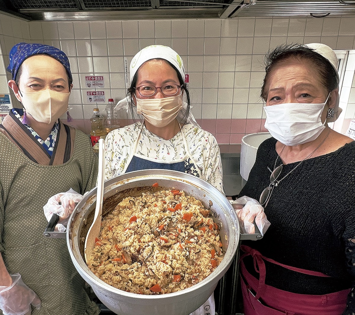 同県人会では、10年ほど前に川崎駅前で開かれる「はいさいFESTA」を盛り上げようと、販売を始めた。当時あった婦人部で料理上手が担当して考案。豚肉、油揚げ、昆布、椎茸、ニンジン、ゴボウなど具だくさんで、炊き込むのではなく、炒めた具材と炊いた米を混ぜ合わせるのが特徴。具材の味や食感がより感じやすいという。