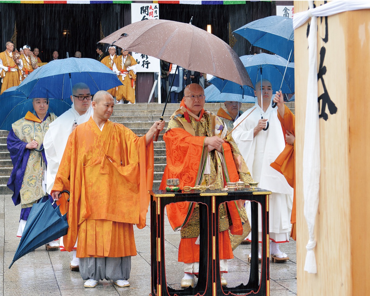川崎大師平間寺(川崎区大師町)で10年に1度の「大開帳奉修」が5月1日から始まった。31日までの期間中、「御戸帳(みとちょう)」と呼ばれる幕が上がり、大本堂の本尊の弘法大師を通常より近くで拝むことができる。弘法大師が直筆したと伝わる手刷りの特別な護符「赤札」の授与も行われている。
