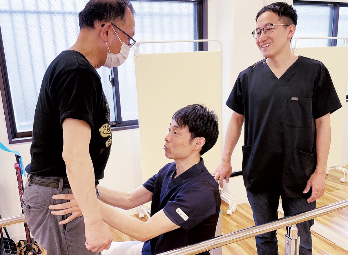 改装された70平米のリハビリルームでは、10年以上の経験を持つ理学療法士と作業療法士が患者に寄り添ってサポート。外来・入院ともに利用でき、他院での術後フォローにも対応する。