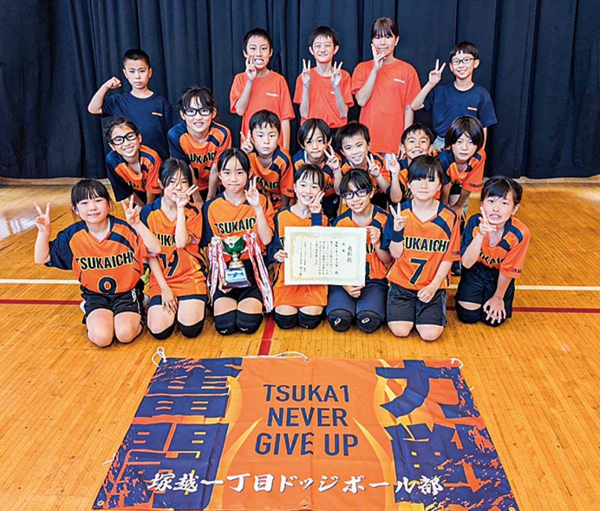 大会には9チーム参加し、コート上で熱戦を繰り広げた。2位以下は次の通り。準優勝=杉の子グリーンモンスターズ▽第3位=古市場ドッジボール部▽敢闘賞=小向西町ブルーウェーブ