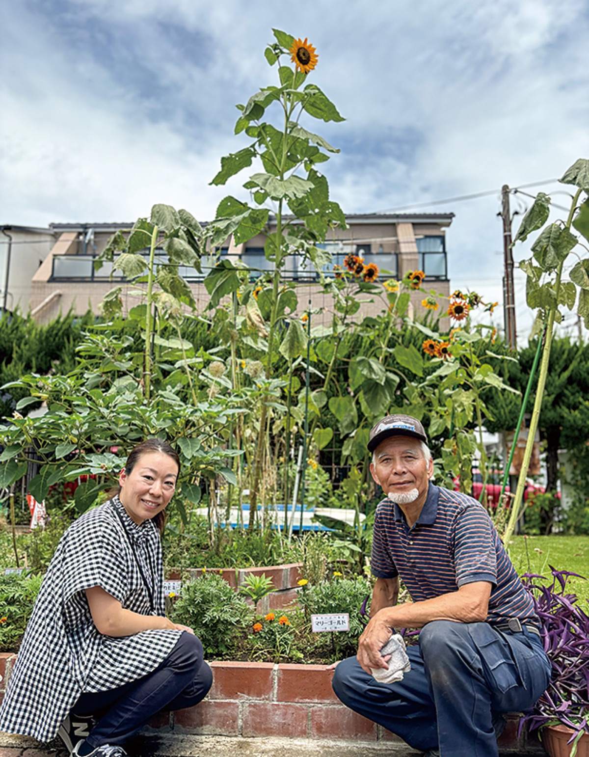 今年のコンクールには個人42点、団体80点の計122点の応募があり、「みんなのエコガーデン賞」は入賞の一つ。中村美栄子館長によると、同センターの花壇にはマツバボタンやポーチュラカ、キバナコスモス、コリウスなど鑑賞期間の長い季花を植えて花が絶えないよう工夫。また、黄赤色系の暖色を中心に明るい花壇づくりを心掛けている。庭の手入れは近くに住み、農業や園芸に詳しい本多眞谷さんと地域の5歳から12歳の児童約15人が所属するあさだガーデンクラブが行う。特に本多さんの実家は農家で園芸や農作業に詳しく、落ち葉などで有機たい肥などを作り上げる。「子どもたちに花と野菜を間近に触れることができる機会をつくりたい」。そんな思いで日々作業にあたっているという。センターの裏庭には畑を作り野菜を育て子どもたちと一緒に収穫を行っている。