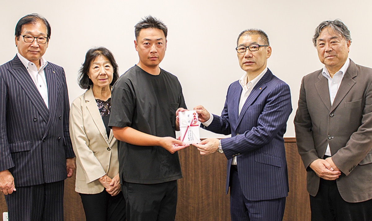 「子どもたちのために役立ててほしい」と毎年続けている奉仕活動の一環。この日は出口支部長と、副支部長の米田恵子さん、小林達夫さん、清水弘之さんの3人がすまいる(川崎区浜町)、新日本学園(中原区)、川崎愛児園(宮前区)、の3園を訪ね、各園に10万円ずつ届けた。新日本学園の宮浦健太副園長は「夏のキャンプや球技大会への参加などに寄付金を活用させていただいている。子どもたちがさまざまな活動をできるのもこうした支援のおかげ」と感謝を述べた。