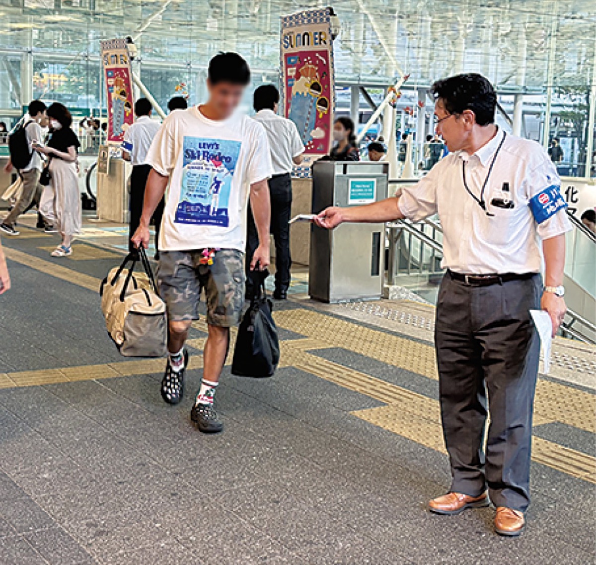 市内の多くの労働組合で構成される「川崎地域連合」(渡部堅三議長)と県組織「連合神奈川」は8月8日、核兵器の廃絶を求める街頭活動「ピースウイーク」をJR川崎駅前や溝口駅前で行った。