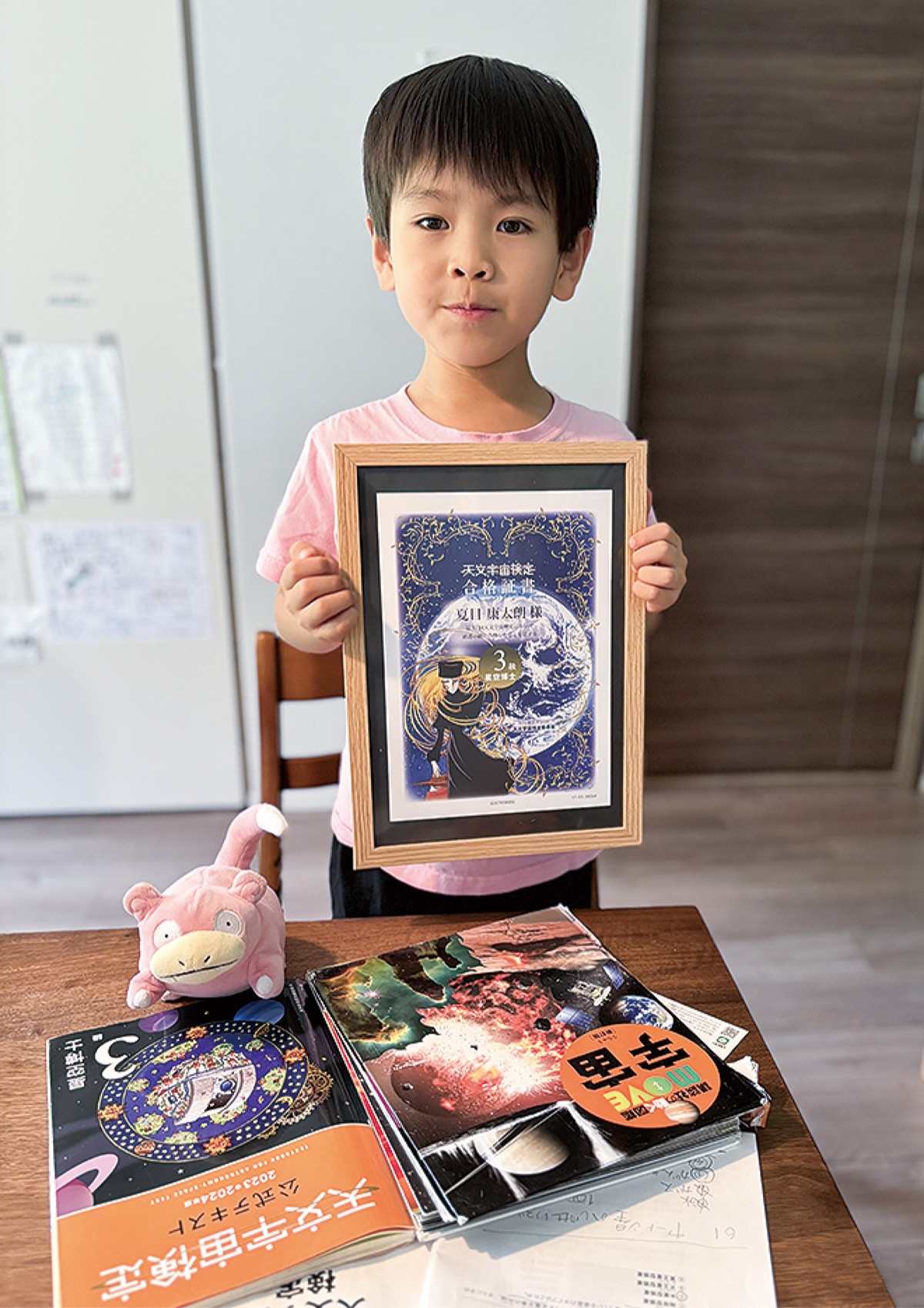 同検定は図書館で宇宙関連の本を探す中で見つけた。天文学の知識、歴史や時事問題などが出題されるが、趣味の延長で気軽に挑戦。5歳の時に4級合格を果たした。