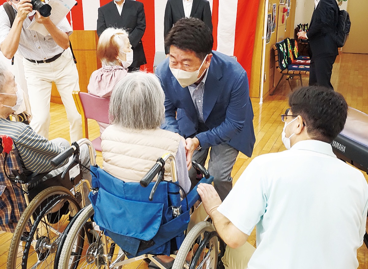 9月第3月曜日の「敬老の日」にちなみ、川崎市の福田紀彦市長が16日、市内の特別養護老人ホームなどを訪問し、高齢者の長寿を祝福した。