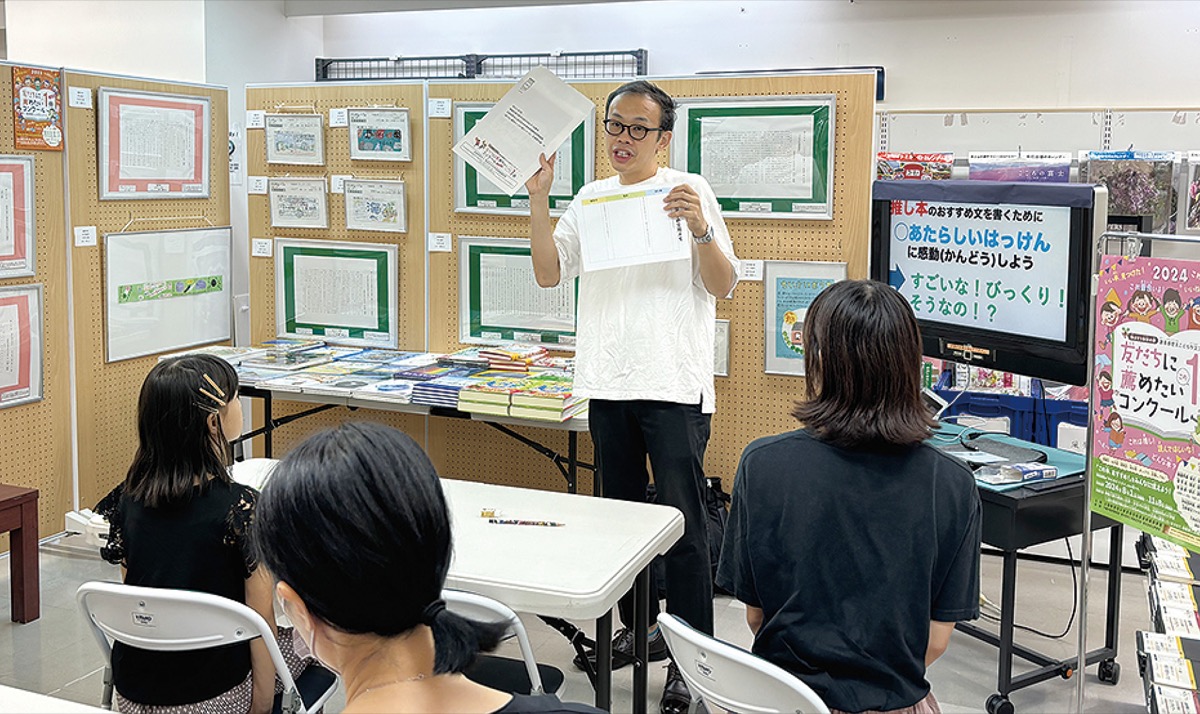 自分の推しの本を友達に紹介するための文章作りに挑戦するイベントが9月21日、北野書店で開催された。元東小倉小学校教諭でお茶の水女子大学附属小学校教諭の森壽彦さんが講師を務め、参加した子どもたちに書き方のポイントをアドバイスした。
