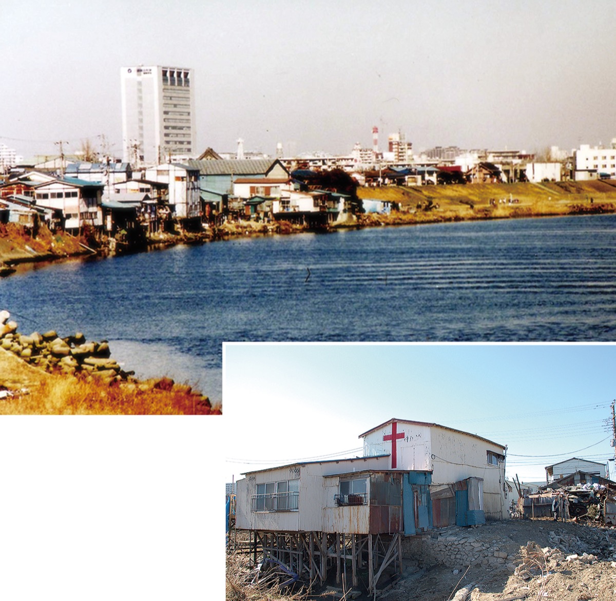 同地は戦後行き場の無かった在日コリアンらを中心に、様々な人々が助け合いながら生活をした集落があった。「醤油が切れたら気軽に借りられる仲」といった関係が築かれていたという。川崎戸手教会は土手の中と外をつなぐコミュニティーの中心でもあった。集落は2006年からのスーパー堤防(高規格堤防)の整備により、姿を消したが生活の記憶は残り続けている。