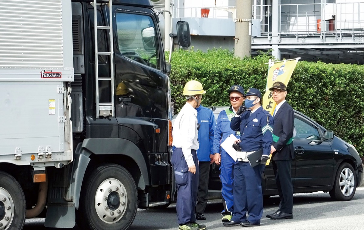 県警察本部や川崎市、川崎臨港交通安全協会、川崎臨港安全運転管理者会、事業者の関係者など計8団体32人が参加。のぼり旗や拡声器を使って広報活動したほか、ドライバーにトラック待機所の利用を促す啓発チラシを配布した。