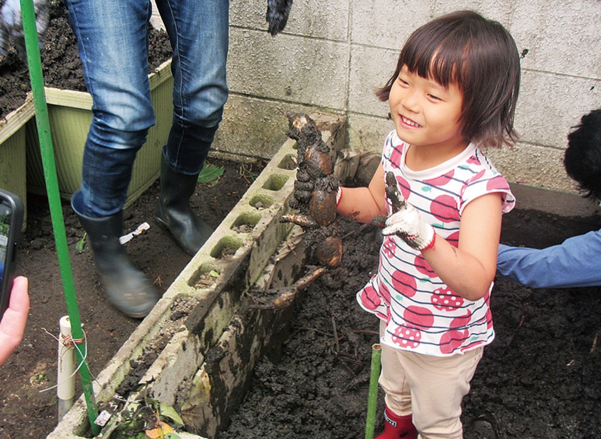 この日収穫したレンコンは4月の活動で種レンコンを植え付けしたもので、収穫当日は、土壌の水を抜き、手作業で泥を掘りながら収穫。大きく育ったレンコンを見た子どもからは「このレンコンは僕が採る」といった声が上がっていた。