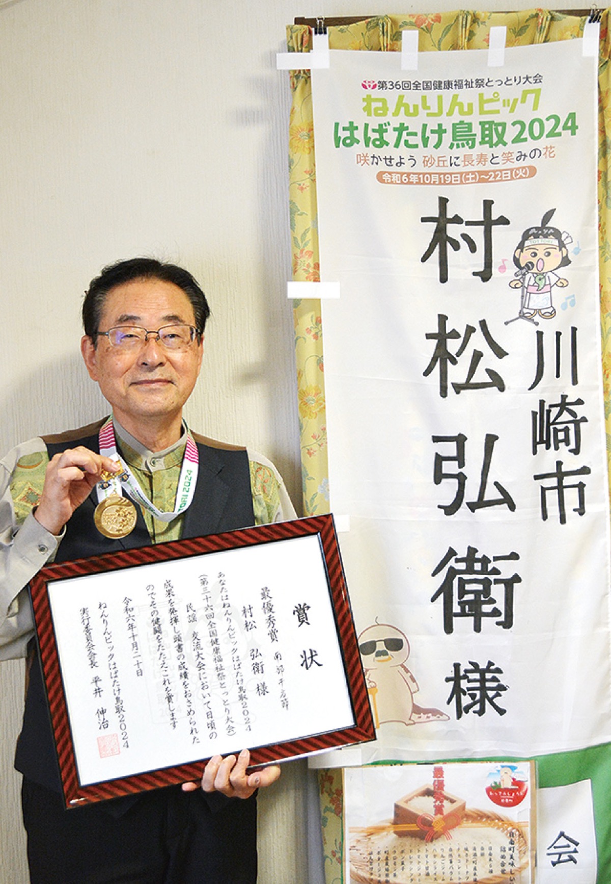 高齢者が主役のスポーツ・文化の祭典「全国健康福祉祭(ねんりんピック)」が10月19日から22日に鳥取県で行われ、川崎市民謡協会の理事長の村松弘衛さん(73)=写真、人物風土記で紹介=が民謡交流大会で最優秀賞に輝いた。