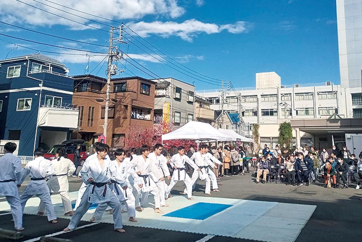 生活介護事業所小向このはな園(幸区小向仲野町)で11月23日、「このはな感謝祭」が開催され、川崎総合科学高校、幸高校、幸区在住の中学生ら12人が同施設利用者に空手演武を披露した。