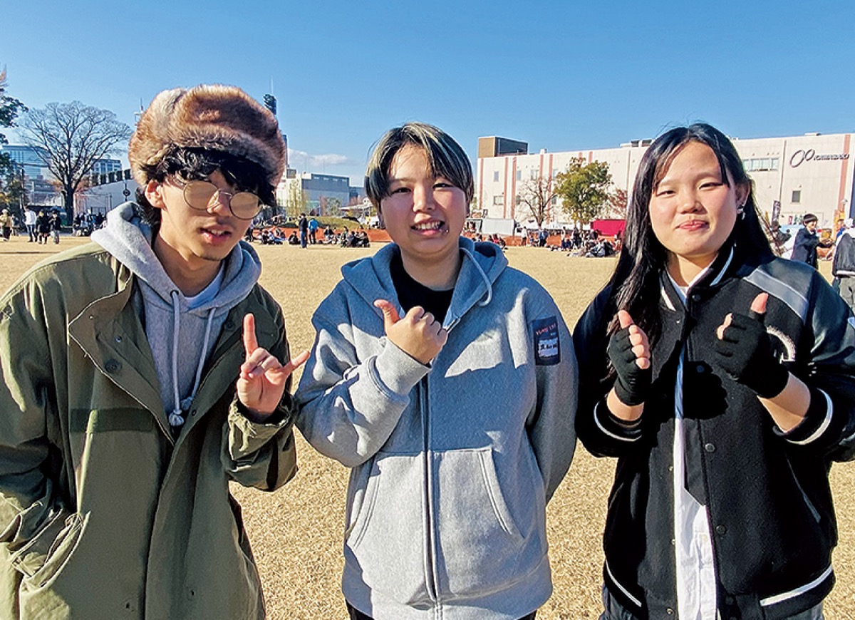 「III for self(サード フォー セルフ)」は今年10月、川崎ゆかりの高校生バンドが頂点を競う「高校生バンド王2024 in かわさき」でグランプリを獲得した。メンバーは、ギターとボーカル担当の榎本美羽さん(同校3年)、ベースの岩村翔太郎さん(同)、ドラムの全 樹希(ゼン スヒ)さん(同2年)の3人。「市民まつり」の芝生広場会場で開かれた「夢ライブ」にゲストとして出演し、「look at the sea/おいしくるメロンパン」「修羅/DOES」の2曲を披露した。リーダーの榎本さんは「たくさんの人たちに演奏を見てもらえてうれしい」。岩村さんも「開放感が気持ちよかった」と満面の笑みを見せた。