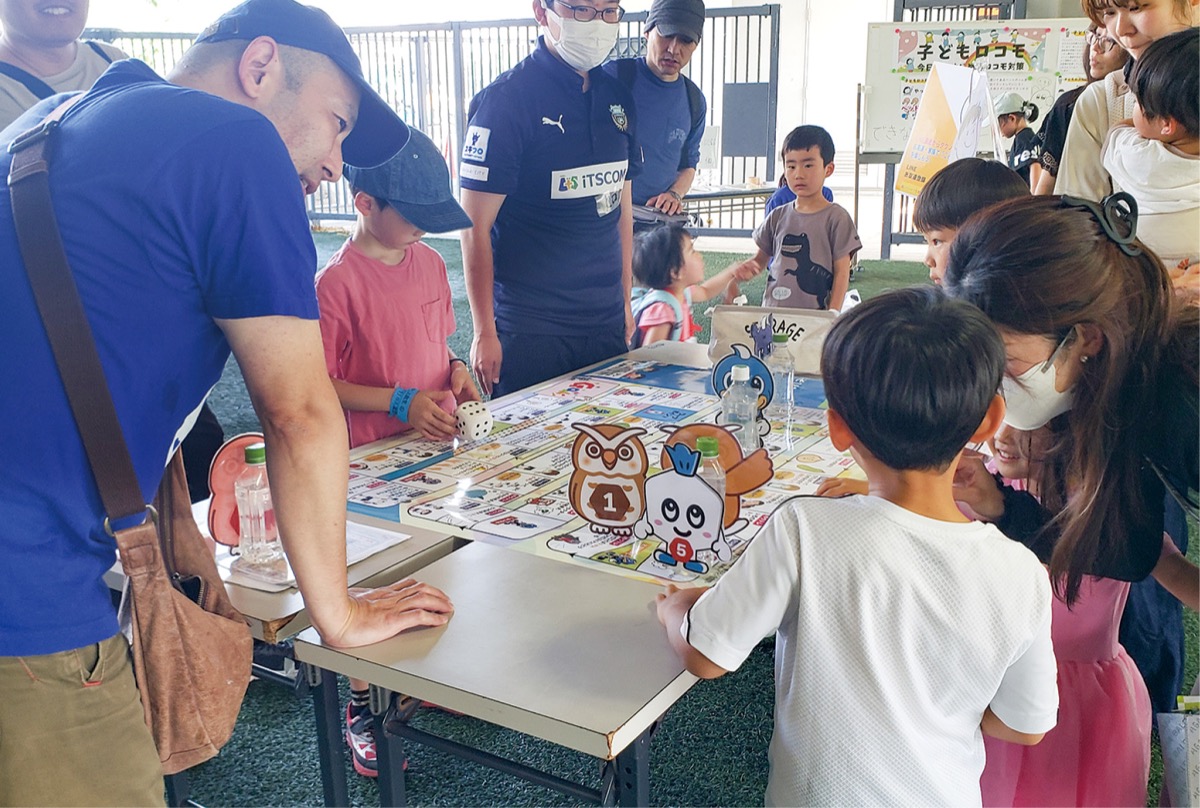同イベントでは昔から日本で親しまれてきた羽根つきの絵付けやこま、けん玉、めんこなど、家族一緒に楽しむにはピッタリな遊びが体験できる。他にもマスに書かれたミッションをクリアしながらゴールを目指す「子ども体幹すごろく」や、文字そのものが笑っているように見える笑い文字を描く教室など、楽しめるブースが盛りだくさん。