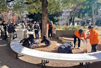 昨年3月にリニューアルした同公園の魅力を高めようと開催されており、今回で2回目。1月の初回には約50人が集まり、多世代が交流しながら清掃活動を行った。