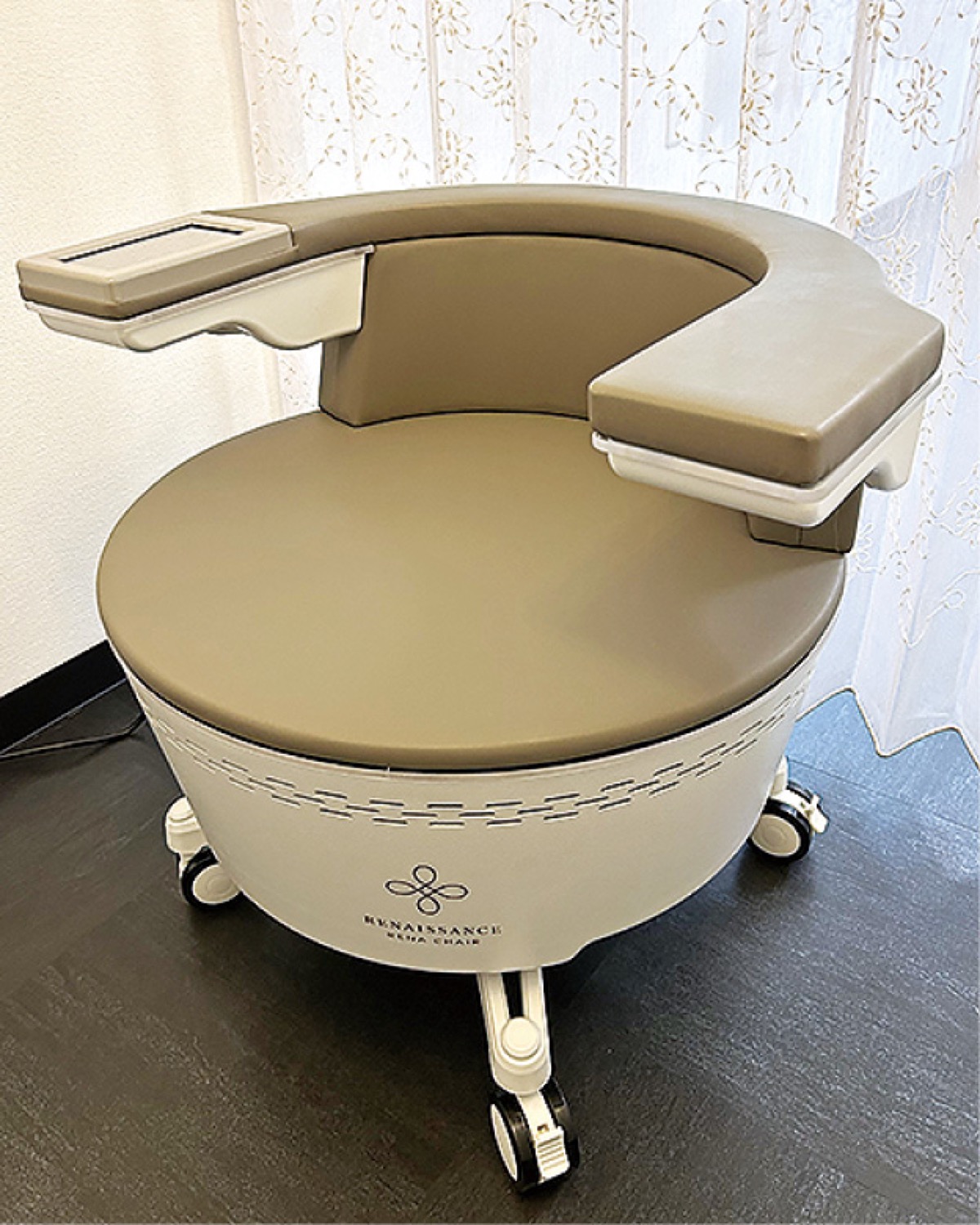 トイレの悩みに関係するのが、出産や加齢により弱まった「骨盤底筋」。同店では着替え不要で椅子型の専用マシンに座るだけで気軽に鍛えることが可能。1回30分座ることで、電気刺激によりスクワット2万回相当の運動ができるという。「運動ができない方、苦手な方は一度ご相談を。対策はお早めに」と同店。