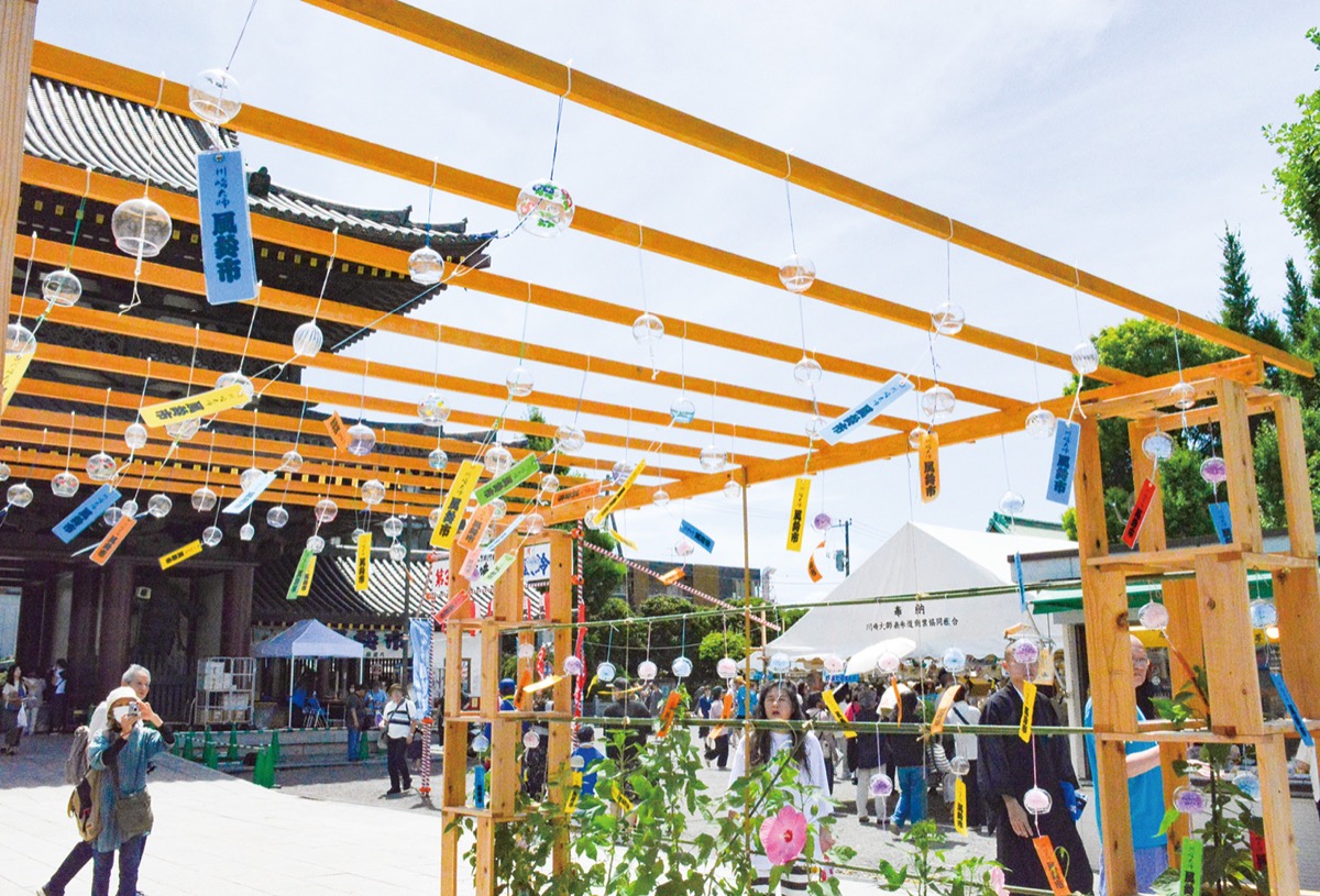 今年で30回目となる恒例の「風鈴市」が7月17日から21日まで川崎大師 平間寺(川崎区大師町)で開催された。主催は川崎大師観光協会と川崎大師表参道商業協同組合。全国各地から特徴の違う約800種類の風鈴が集結し、訪れた多くの人々に涼しい音色を届けた。