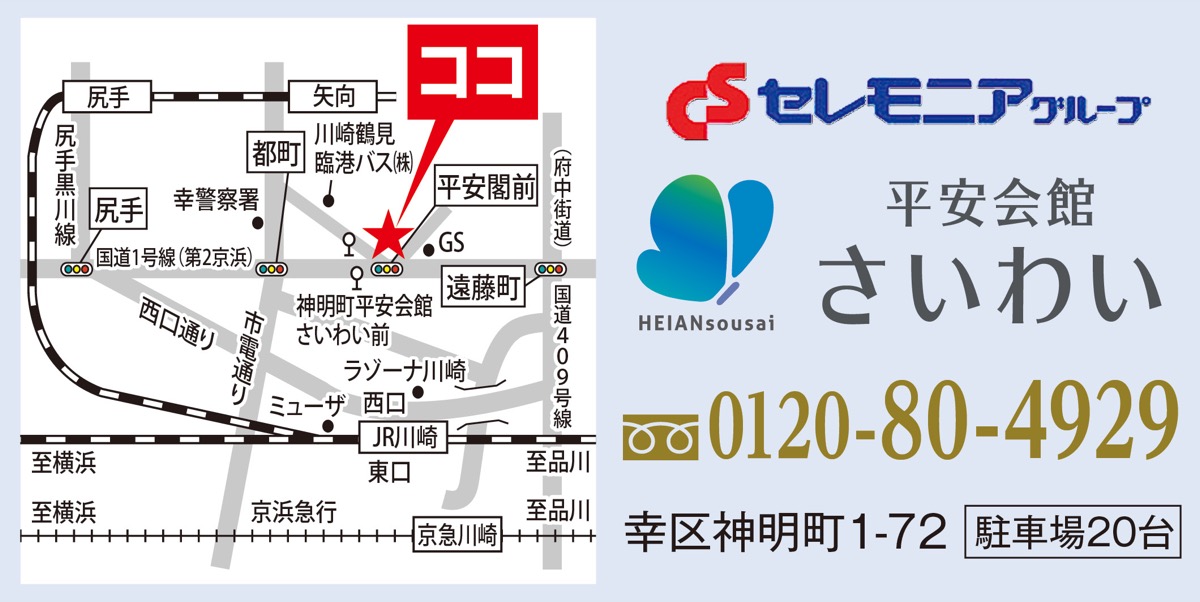 地域に寄り添い「安心」「信頼」を届けるセレモニアグループの『平安会館さいわい』は8月14日(木)、特別見学会を開催する。午前10時から午後1時。予約不要。