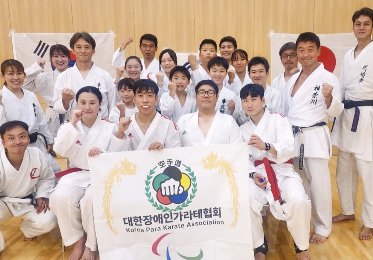川崎市空手道連盟は8月10日、東京2025デフリンピックに出場する韓国デフ空手代表団を招き、カルッツかわさき武道室(川崎区富士見)で合同練習会を行った。市連盟の波江野充氏と釜山連盟の親交がきっかけとなり実現した。
