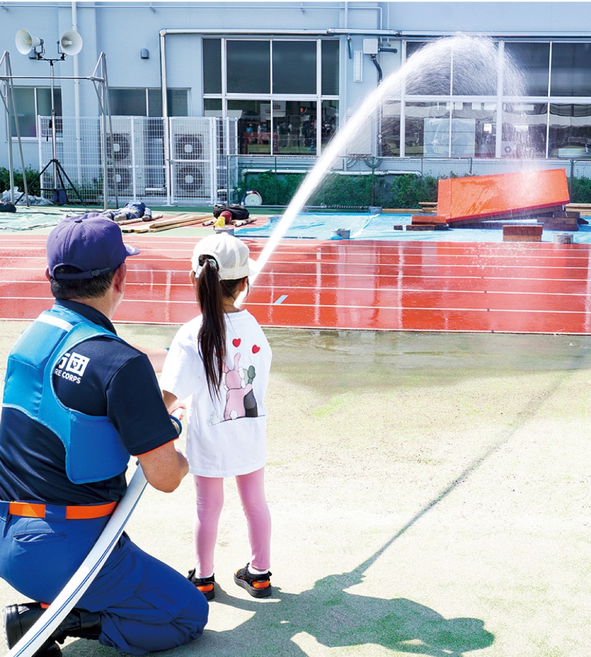 昨今の気象状況の影響か、校庭に設営された国土交通省の「降雨体験車」は、約100人分の体験枠が早々に埋まった。小学4年の息子と体験した幸区の女性は「豪雨の中の移動は、とても見通しが悪いことが分かった。体験できてよかった」と話していた。