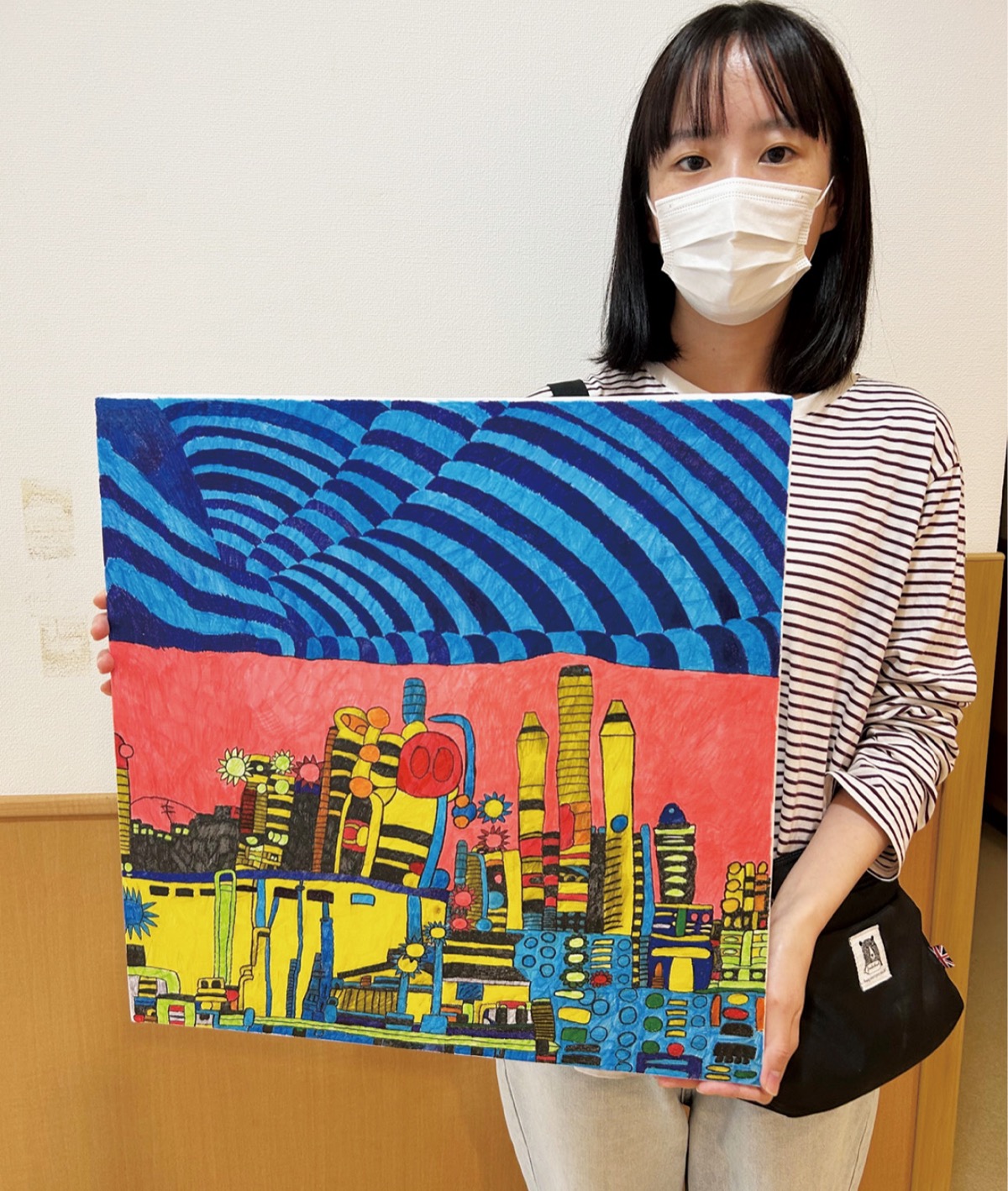 大阪万博で展示されたのは13年と14年の「工場」2作品で、いずれも川崎の工場写真をもとに、ペンや色鉛筆で躍動感たっぷりに描き込んだ。滋賀県近江八幡市にある美術館「ボーダレス・アートミュージアムNO―MA」が主催する企画展「アヴァンギャルドですが、なにか」の参加アーティストの一人として紹介された。現在は同美術館に凱旋し、2026年1月12日(月)まで展示されている。