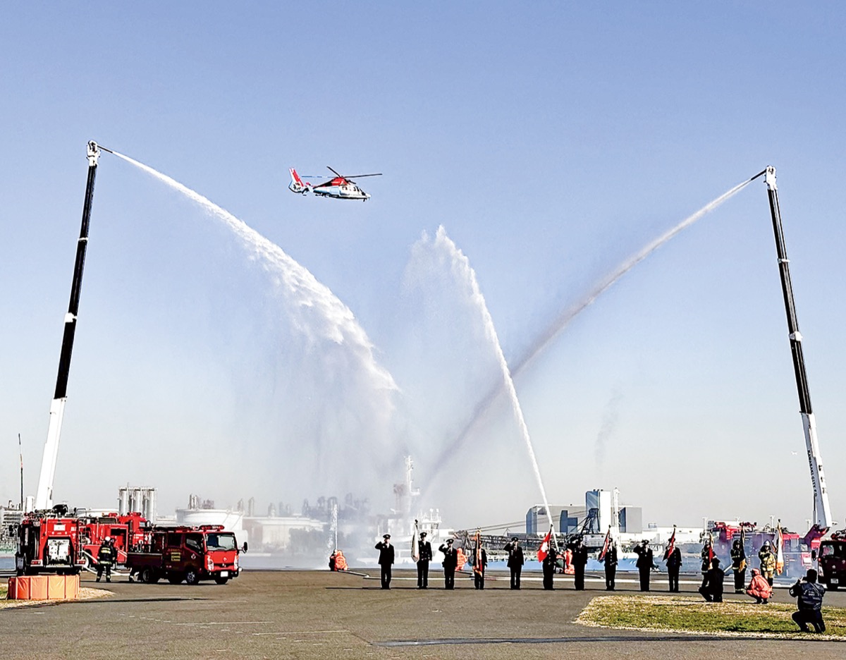杉山哲男署長はあいさつで「首都直下地震などの大規模地震の切迫性や、地球温暖化による大規模自然災害の発生に鑑み、臨港消防団をはじめ消防協力団体などと連携し、総合的な地域防災力を強化する。それとともに国家プロジェクトを推進する臨海部を管轄する防災機関として、災害発生の未然防止に総力を挙げてまい進する」と力を込めた。
