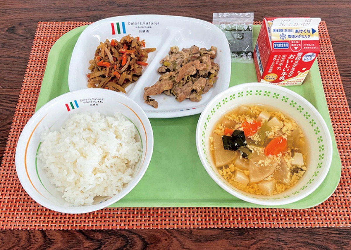 7353人の生徒投票のうち2894票が集まった田中さんの献立は、豚肉のこく旨ねぎ塩焼き、ピリ辛キンピラごぼう、卵と冬野菜の和風汁と白米、牛乳の5品。アクセントとして入ったこしょうとラー油によってご飯が進むことで食べ残しが減り、食材ロスが考えられている点や、地元の冬野菜を使うことで成長期に必要な栄養素がしっかり取れる点が評価された。