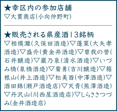 なお、店舗によって取り扱う銘柄が異なる。問い合わせは川崎酒販協同組合事務局(【電話】044・222・5080)。