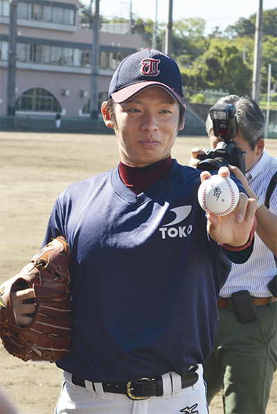 桐光学園高校野球部の松井裕樹投手が、9月27日に区内栗木の同校で記者会見を開き、プロ野球入りをする意志を表明した。10月24日に行われるドラフト会議では、複数球団が松井投手を1位候補にしており、指名されれば、同校から直接プロ入りする初の選手となる。