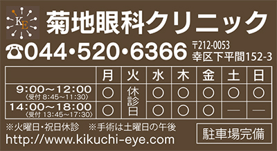 今年1月に開院した「菊地眼科クリニック」(菊地琢也院長・JR鹿島田駅から徒歩5分)。「地域のかかりつけ眼科医」を目指し、一般外来の診察をはじめ、硝子体疾患、小児眼科などの専門性の高い疾患まで対応。眼科に特化したスタッフも常勤し、質の高い医療の提供を目指している。
