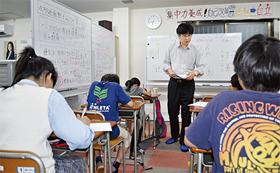 そのため、同塾では中学生と4、5、6年の小学生を対象に、中学生には英単語1000語を、小学生にはアルファベットとローマ字に加え、小学生用英単語400語をプリント・テスト形式で教えている。平日(月・水・金曜日)は生徒が、ひたすら書いて覚える自習形式をとり、土曜日には自ら授業を行う。教材費として初めに千円の負担はあるが、授業料などその他費用は完全無料だ。「少ない金額でも子どもからは絶対に取らない」と筧さん。