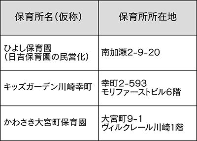 保育所の問い合わせなど詳細は市民・こども局こども本部保育所整備推進担当(【電話】044・200・3414)まで。