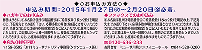 開催日は3月11日(水)、午後7時開演。入場無料(要事前申込)。(※入場は無料ですが公演当日会場にて一人、1000円以上の寄付をお願いします。寄付金は川崎市の東日本大震災被災者等支援基金へ全額寄付させていただきます)。