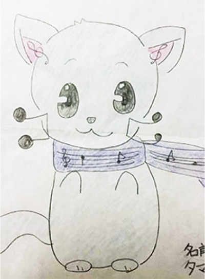 当日は、事前に選んだ6作品の中から1作品を選んで投票してもらう方式で行われ、御幸小学校の児童2人が共同で手掛けた多摩川と音楽のまちをイメージして描いた「タマメロニャン」が49票で最優秀作品に選ばれた。
