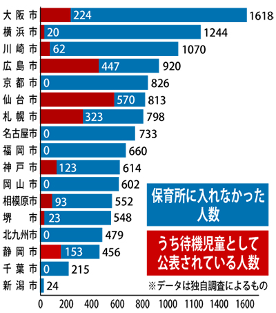 昨年の12月議会で「隠れ待機児童」問題を取り上げました。川崎市の待機児童数は減少していますが、実は保育所に入れなかったにも関わらず待機児童にカウントされない「隠れ待機児童数」が政令市ワースト3の1008人も居たためです。議会では待機児童の数え方が自治体により異なり本当に保育を必要としている人の実態が見えなくなっていると指摘し、市の真摯な対応を求めました。