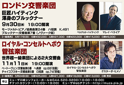11月11日(水)は、2013年にベルリンフィル、ウィーンフィルとともにミューザ「奇跡の一週間」の立役者となった「ロイヤル・コンセルトヘボウ管弦楽団」が2年ぶりの公演を行う。19時開演(18時開場)。