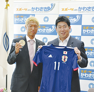 福田市長は「アジアの得点王が川崎市在住とは知らなかった」と驚きながらも後藤選手の活躍に称賛を送った。