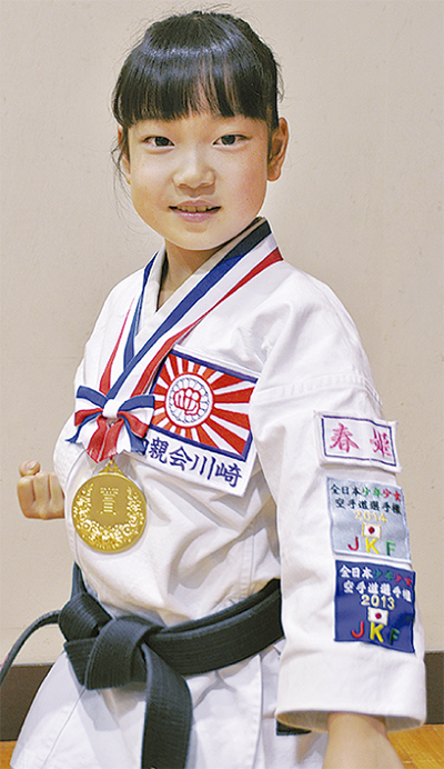 古川町在住の酒井春姫さん(下平間小学校3年)が5月24日、寒川総合体育館で行われた神奈川県春季少年少女空手道選手権大会で優勝し、3年連続の全国大会出場を決めた。出場したのは、形個人戦小学3年生女子の部。8月の全国大会では、初優勝を目指す。