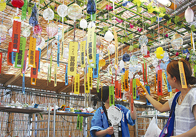 涼を求めて毎年30万人以上が訪れる「川崎大師風鈴市」が、今年で20回目を迎える。川崎大師観光協会(斎藤文夫会長)主催。全国各地から900種3万個の風鈴が勢ぞろいする日本最大級規模の風鈴市。20回記念イベントや今年だけの限定だるま風鈴も登場する。