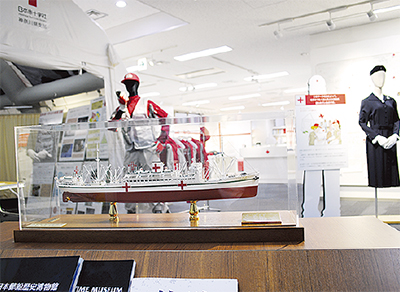 日本赤十字社神奈川県支部=横浜市中区=にこのほど、戦時中に海軍特設病院船として活動した氷川丸の病院船モデルが寄贈され、支部2階の「情報プラザ」で展示されている。