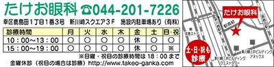 JR横須賀線・新川崎駅と南武線・鹿島田駅からすぐのところにある新川崎スクエア3階の『たけお眼科』。同院は誰でも気軽に訪れることのできる「みなさまの眼科医」をめざし、小さな子どもからご高齢の方まで、幅広い医療の提供を行っている。