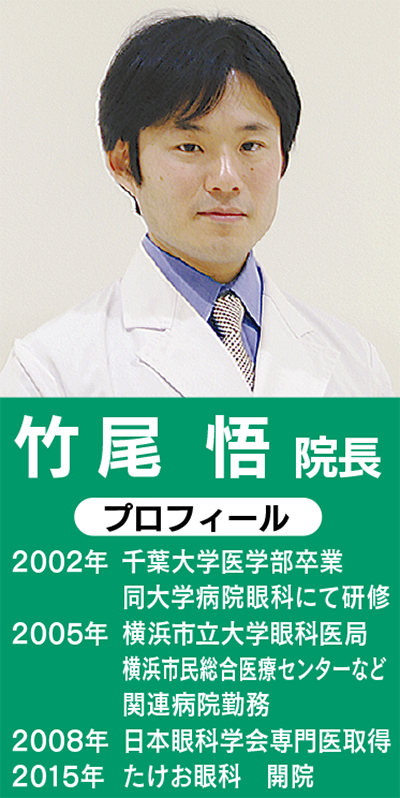 弱視とは、遠視や乱視が強い、あるいは斜視があるなどの理由で、視力がうまく発達できない状態。実は竹尾院長自身も幼少期に弱視であったが、早期にみつかり適切な治療を受けたことで、人並みの視力の発達が得られたという。「私自身が弱視でしたので、身をもって説明することができます。早い段階で見つけ適切な治療をすれば、視力はきちんと出るようになるということを、経験を通して伝えられればと思います」という。視力は3歳から6歳にかけて最も発達するので、この時期に弱視を見つけることが非常に大切だと竹尾院長は話す。また、同院には国家資格を持った視能訓練士が常駐し、弱視に対して適切な検査、トレーニングを行っている。